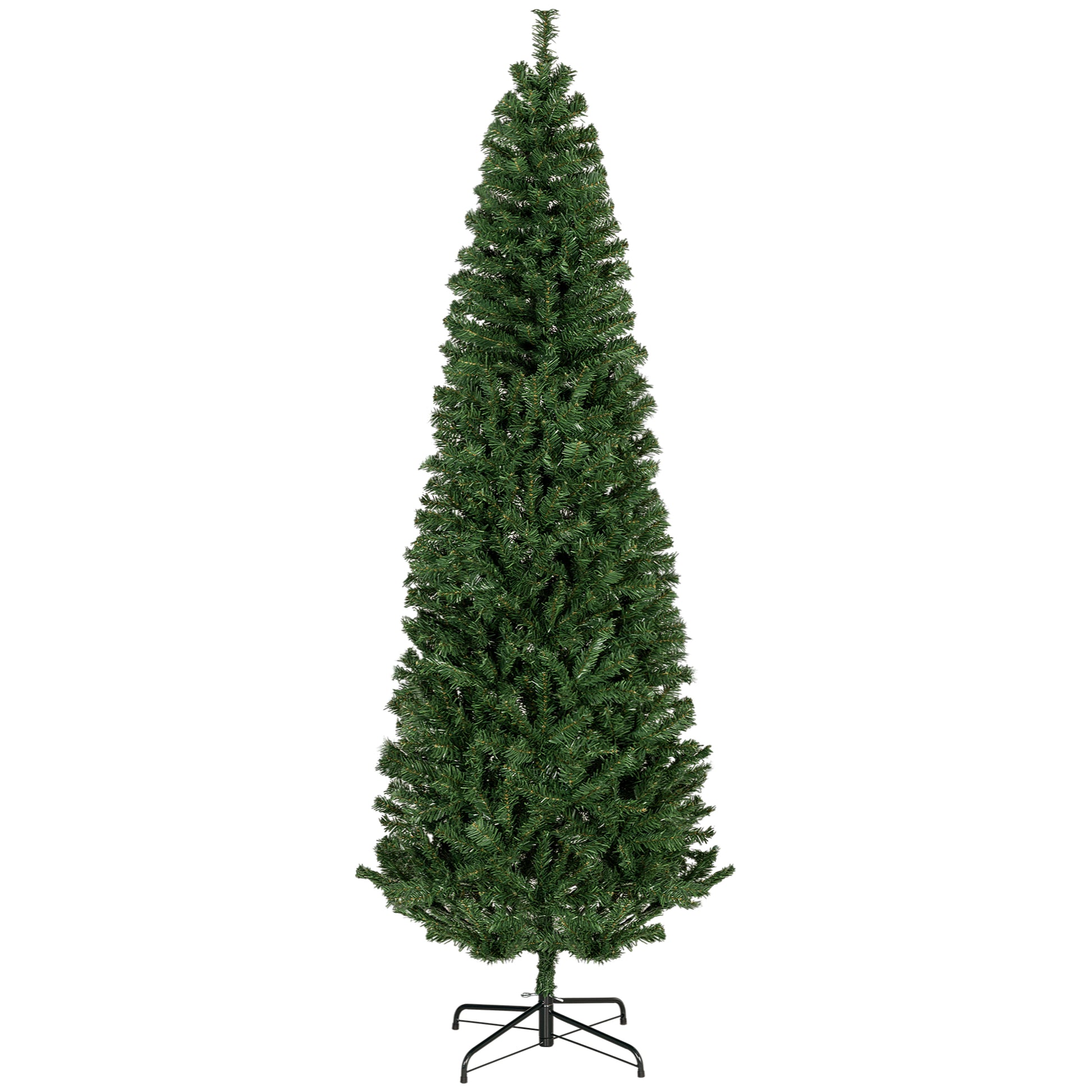 HOMCOM 7ft Pencil Christmas Tree, Unlit Artificial Christmas Tree Slim Douglas Fir Xmas Tree with Realistic Branches, Halloween Tree with 818 Tips, Green